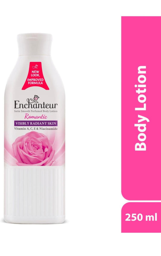 Enchanteur Romantic Perfumed Body Lotion with Aloe Vera & Olive Butter for Satin Smooth Skin| | Non-Greasy Formula| Water-Based Lotion| Floral French Fragrance | 250ml